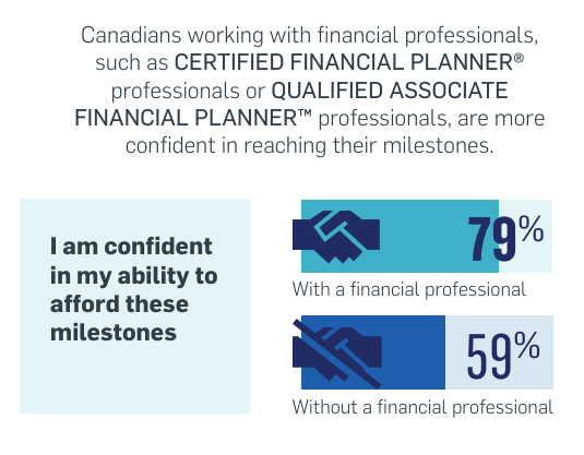In fact, according to our FP Canada Money & Milestones survey, Canadians who work with a financial professional have more confidence that they will be able to afford their life milestones than those who don’t work with one.